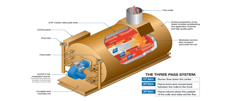 Fulton thermal fluid heaters feature proven design that maintains high fluid velocities and low film temperatures which is immensely efficient. Fulton heaters require minimal floor space due to being skid mounted which includes expansion tank and circulating pump in addition to the heater and compact design. Whether to opt for a steam system or a thermal fluid system is determined by the temperature requirement of the particular process. If the temperature required by the process is below freezing point of water or above approximately 180 C thermal fluid system happens to be a better system while for processes that require temperatures between freezing pint of water and below 180C, steam is the preferable method.
